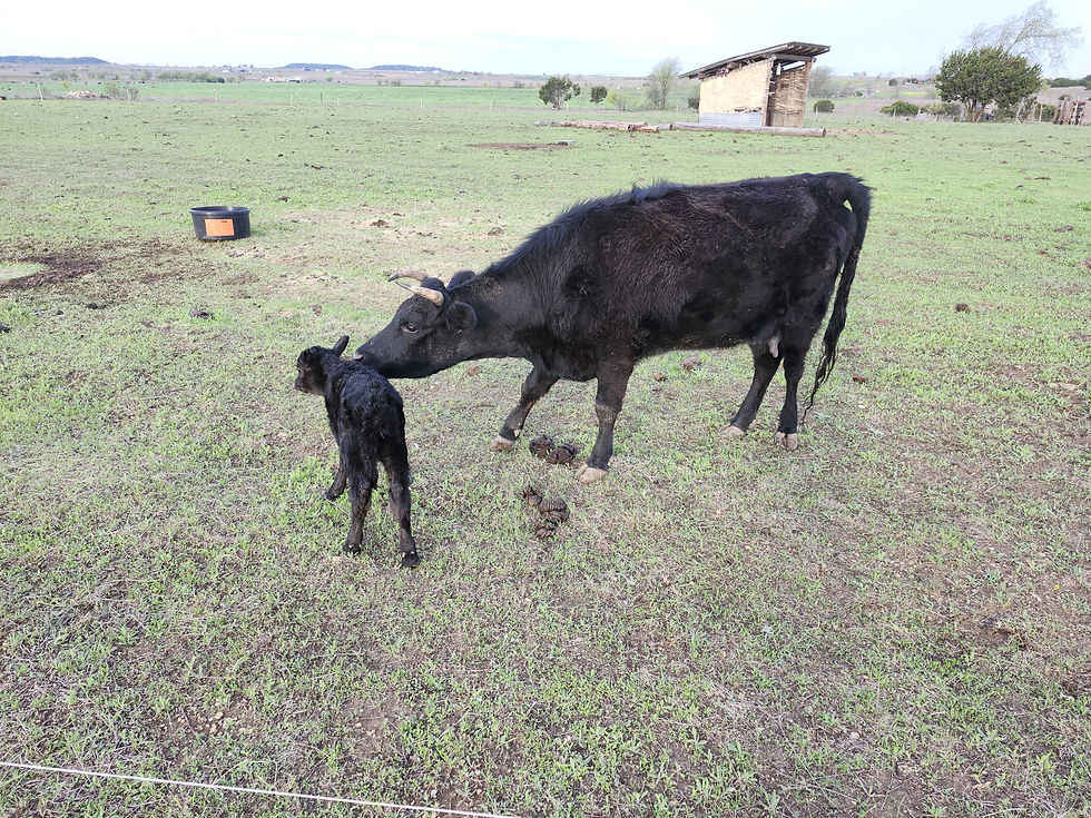 Boy were we fooled. Based on the udder size alone, we figured Rosie was going to be the first to deliver, but instead Velvet delivered her calf the next day. We walked out the next morning and there with Velvet was her new baby calf. We figured the little girl was born sometime around 7am. Currently named V1F for “Velvet 1st Female”, we have joked about naming her Elvis for “Velvet Elvis”